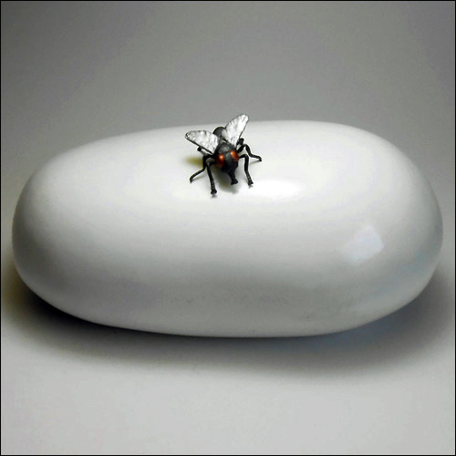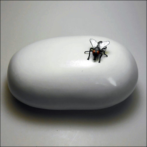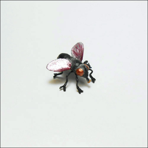 「はえ」をまた作りました。「目黒のクロバエ」かなと笑います。だんだん蠅の形に近ずいてきましたが、原型の作りが気にもなってきました。しばらくはこのまま作っていこうかな。この黒い「はえ」がこれまででは一番しっくりしているように思います。次は色、赤や青や黄の「はえ」を作ってみます。写真は大きくアップして映していますが実際は小さくて細かい所は気にならないのですが‥。