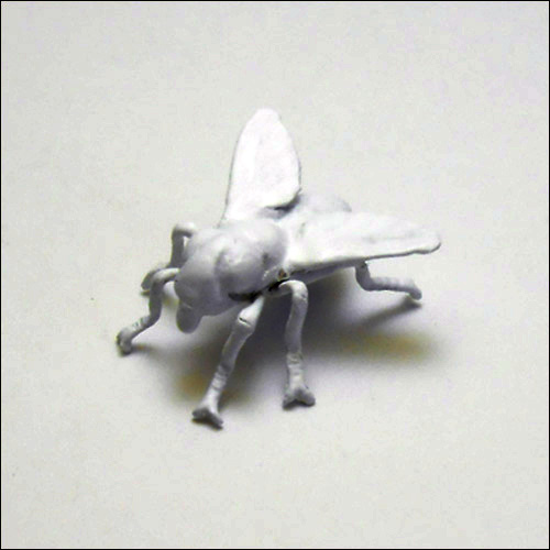 これまでは身体の着色がし易いように羽を開いて作ってきましたが、今度は羽を閉じて作りました。蠅らしいですね。まあ、羽の透明はいかんともしがたいですが。まだまだ工夫すべきところはたくさんありますが、今後まだまだ作るのですからそのうち何とかなるでしょう。